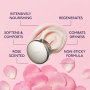 Intensely nourishing lip balm. A cult-classic. Concentrated rose blend formula. Protects all-year round. Fuller, plumper lips.