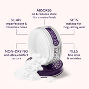 This multi-purpose silky powder instantly blurs imperfections, wrinkles & fine lines, minimizes pores, evens out skin tones, fills, absorbs oil & reduces shine and sets make up for long-lasting wear.