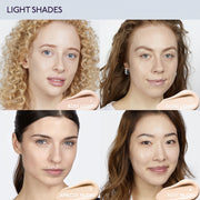The creamy yet lightweight texture effortlessly glides onto the skin, offering buildable coverage that smooths features without leaving any marks or streaks, while enhancing natural light for a radiant finish.